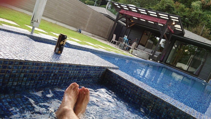 プールは寒くて入れないのですが、ジャグジーは暖かくて気持ちよし。